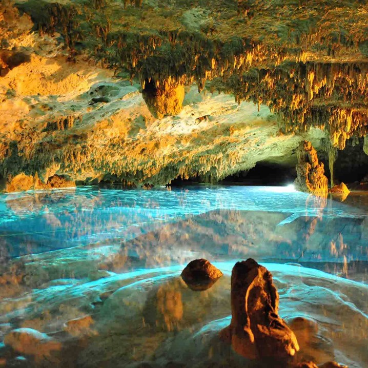 Discover a hidden gem in Riviera Maya, where you can explore a natural aquarium filled with colorful fish, a stunning underground river, and an open cenote.