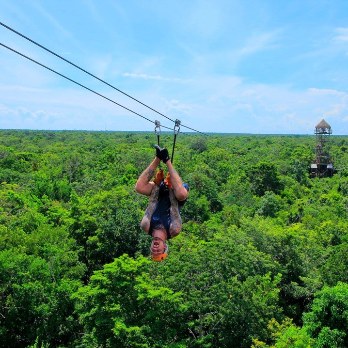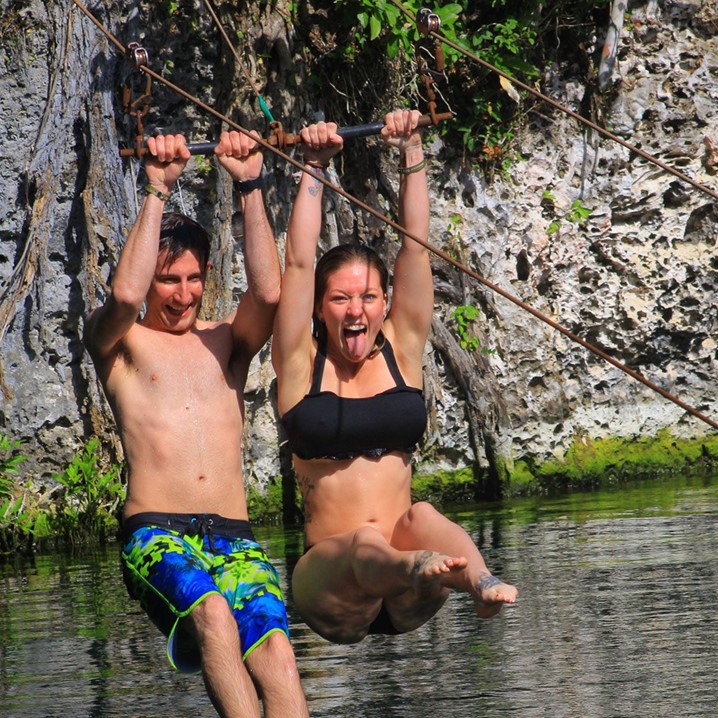 Continue the adventure with an exciting circuit of hammock-style zip-lines, rappel down a rocky wall, and explore the crystal-clear waters of an underground cenote.